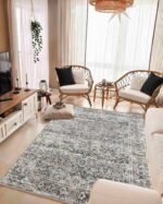 Modern Textured Area Rug 9913’s color story leans into greys, ivories,