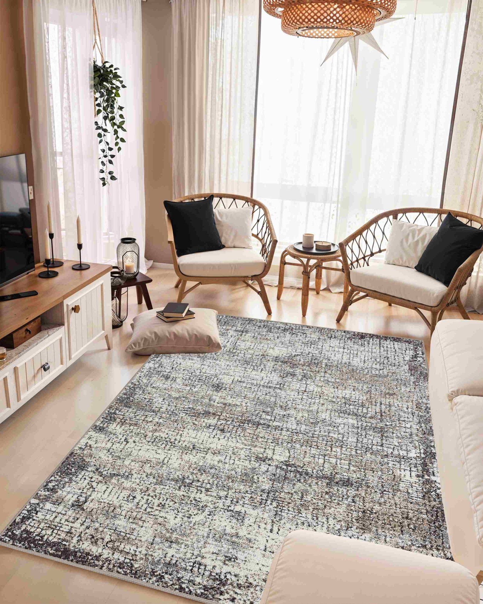 Plush Modern Area Rug 9915 is built around a palette of light grey, warm