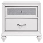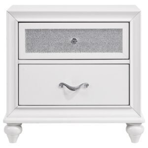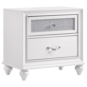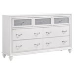 white finish with shiny metal hardware with faceted crystal accents. The