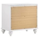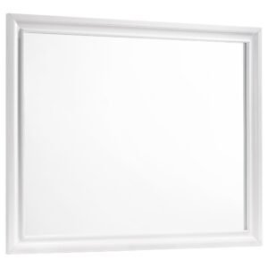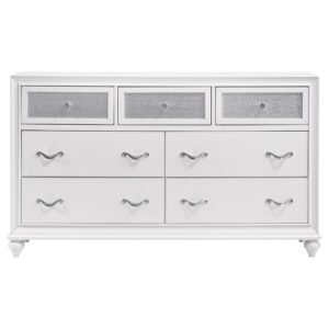 two-drawer nightstand, and seven-drawer dresser with mirror, all in a crisp