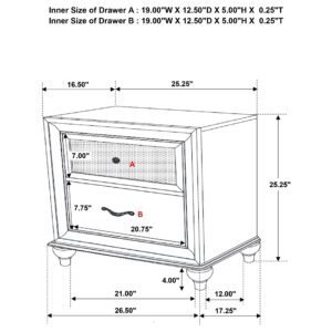 turned feet, and felt lined top drawers. The nightstand offers a convenient