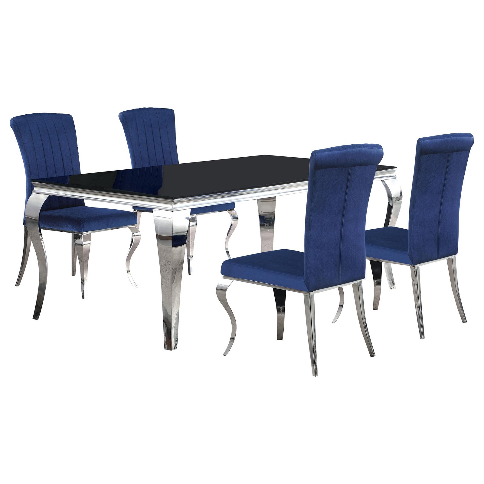 Carone 5-piece 81-inch Rectangular Black Glass Dining Set Blue