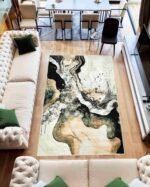 This modern designer rug fits effortlessly into various spaces where