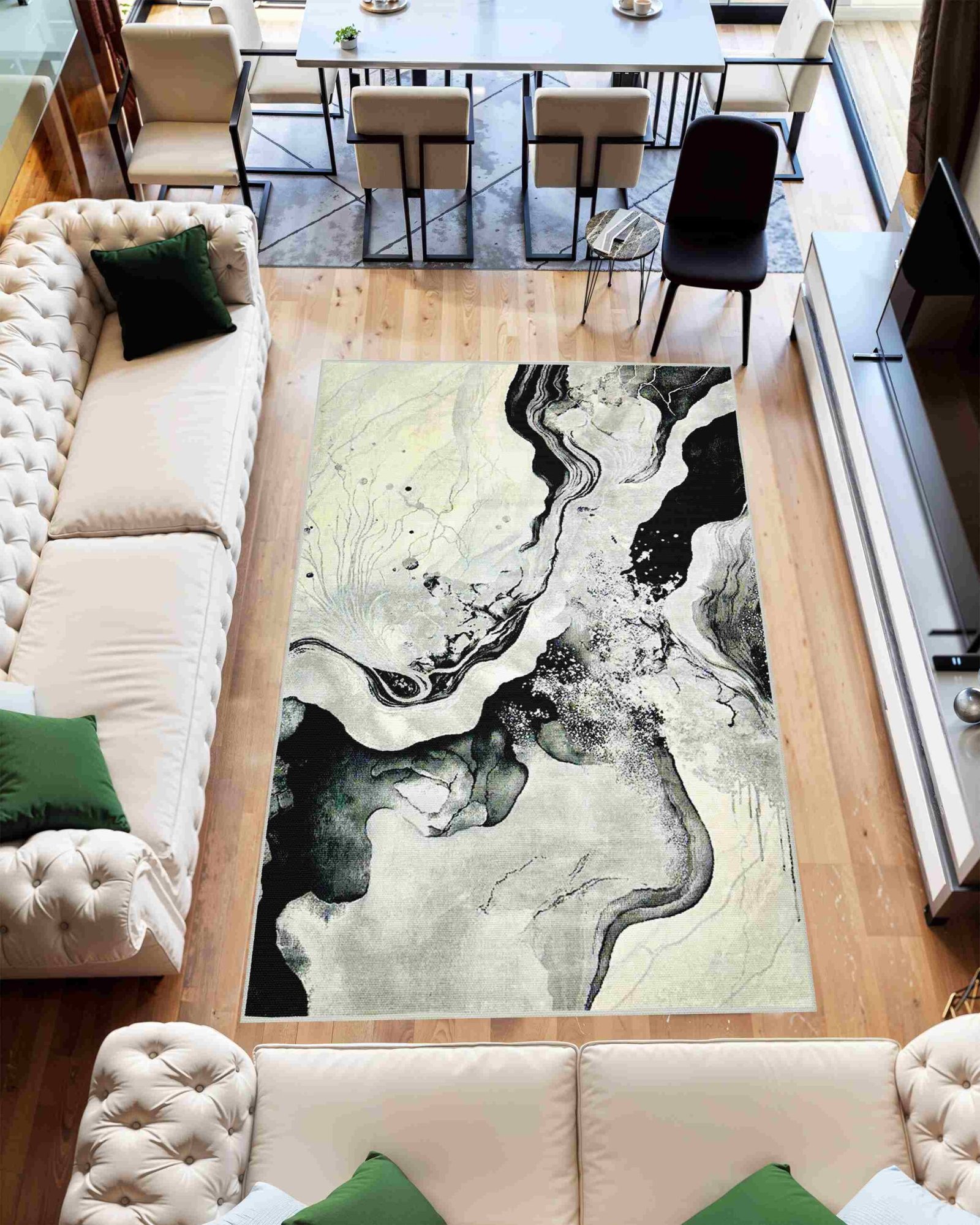 Modern Living Area: Place beneath a sectional or centered seating zone for