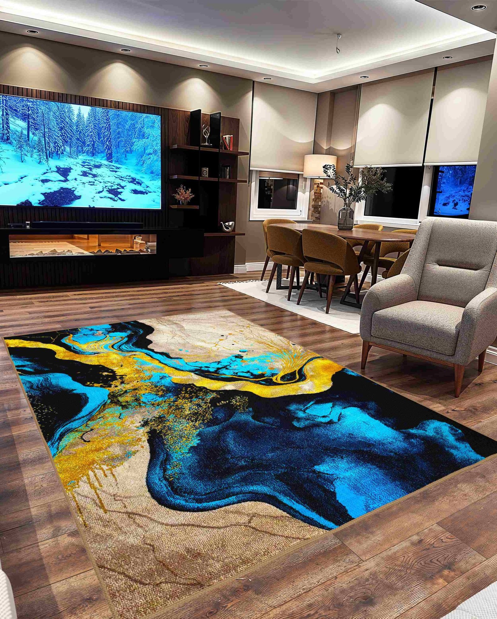 Modern Living Area: Place beneath a sectional or centered seating zone for