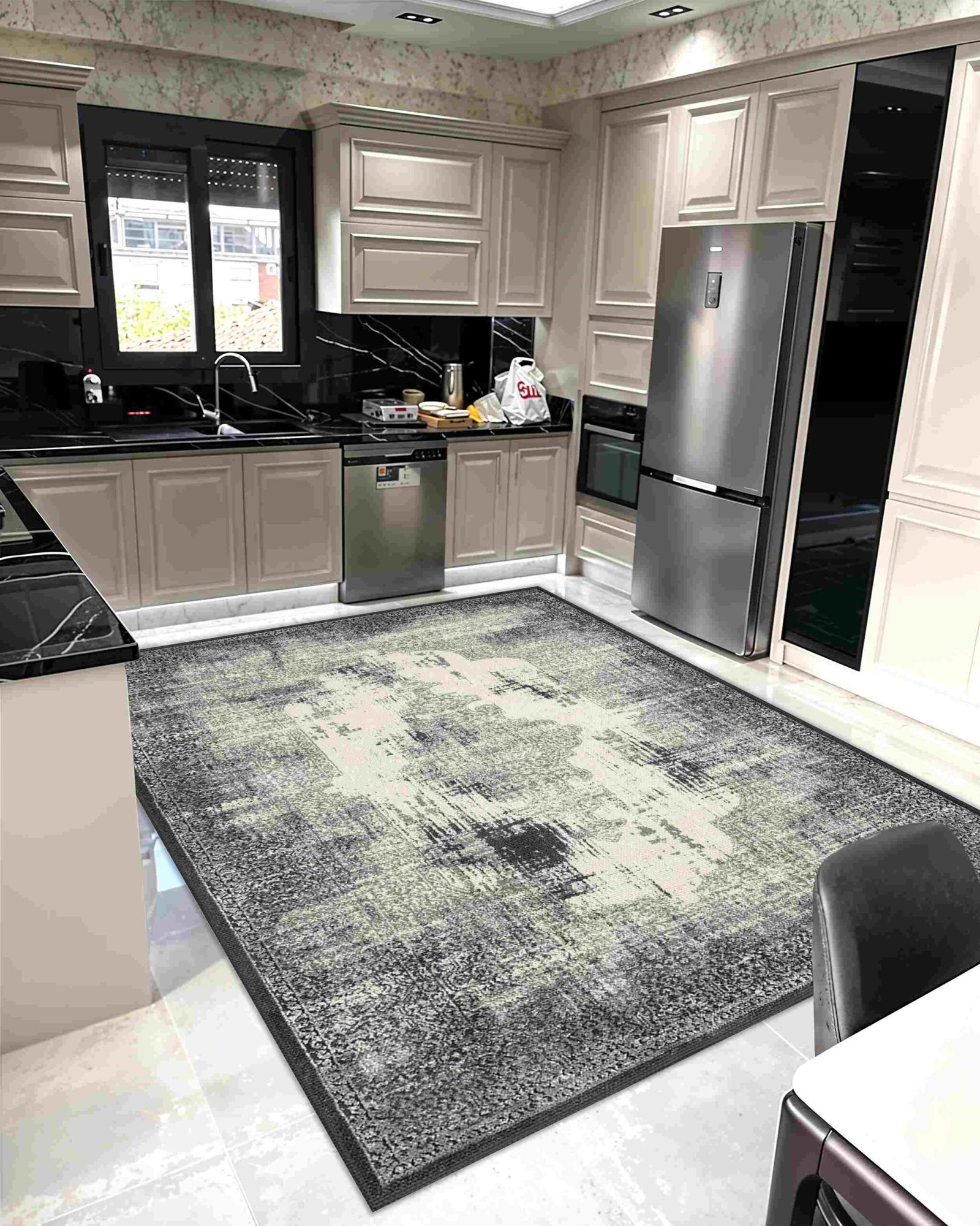 The rug’s modern elegance ensures it complements both minimalist and richly