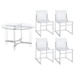 Keeling 5-piece Round Glass Top Acrylic Dining Set Chrome