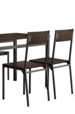 Keep it simple and modern with this five piece dining set. The look of wood tops on a metal frame is characteristic of a modern industrial design theme, popular in loft spaces and modern homes. The finishes bring added protection against the activity of daily life with a PVC coating on MDF surfaces and a scratch-resistant powder coat on the metal frames. The contrast of brown surfaces with a black frame evokes a masculine feel for this industrial dining set. This aesthetic with clean lines is perfect for a loft space or modern condo.