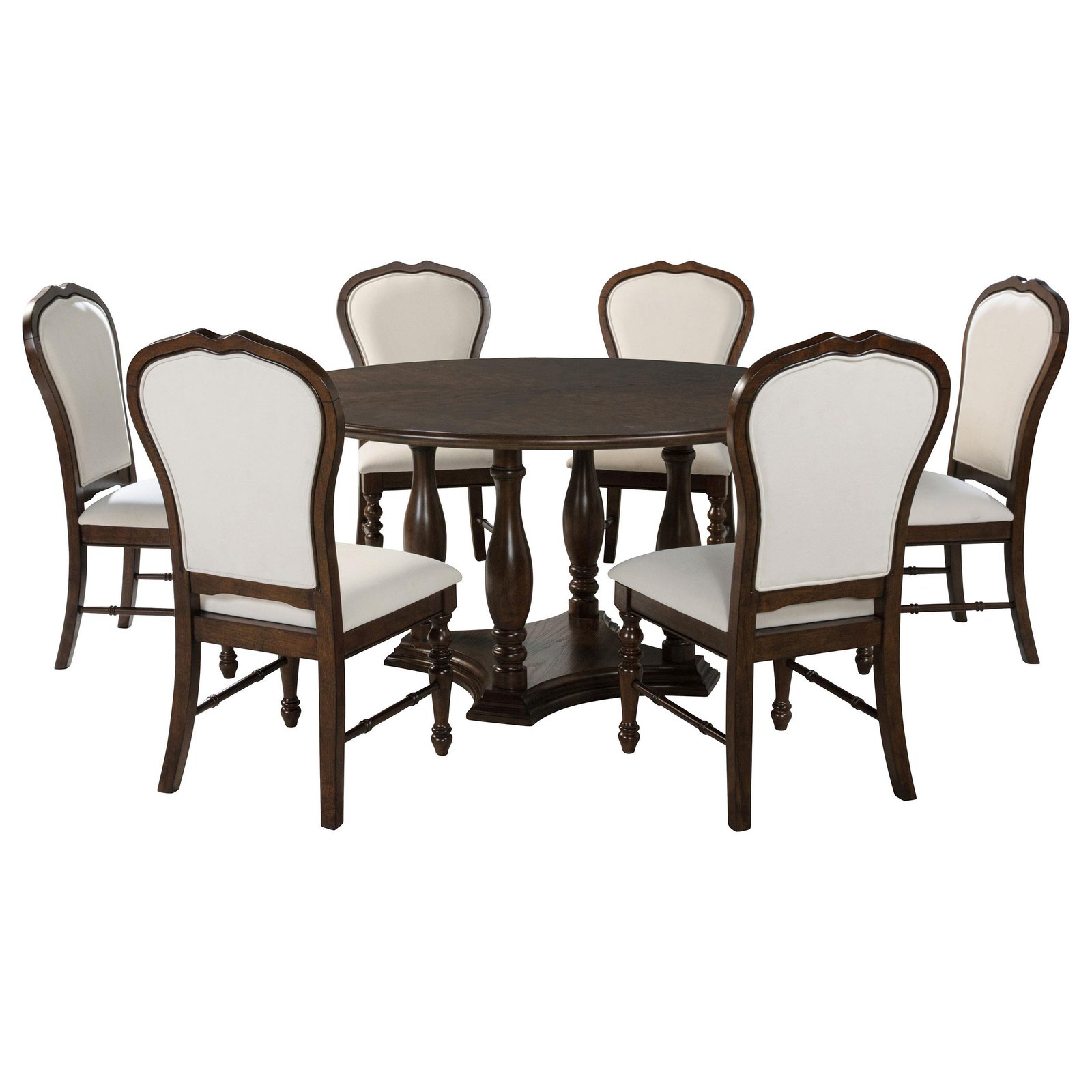 Landon 7-piece 60-inch Round Dining Table Set Rich Brown