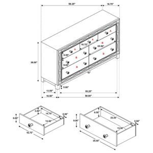 of shine, this four-piece bedroom set is simply exquisite. Each piece is