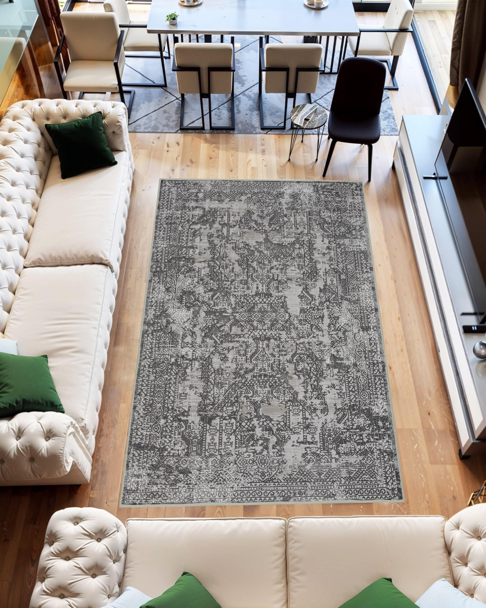 enhances its visual appeal, making it a trending rug choice for any modern