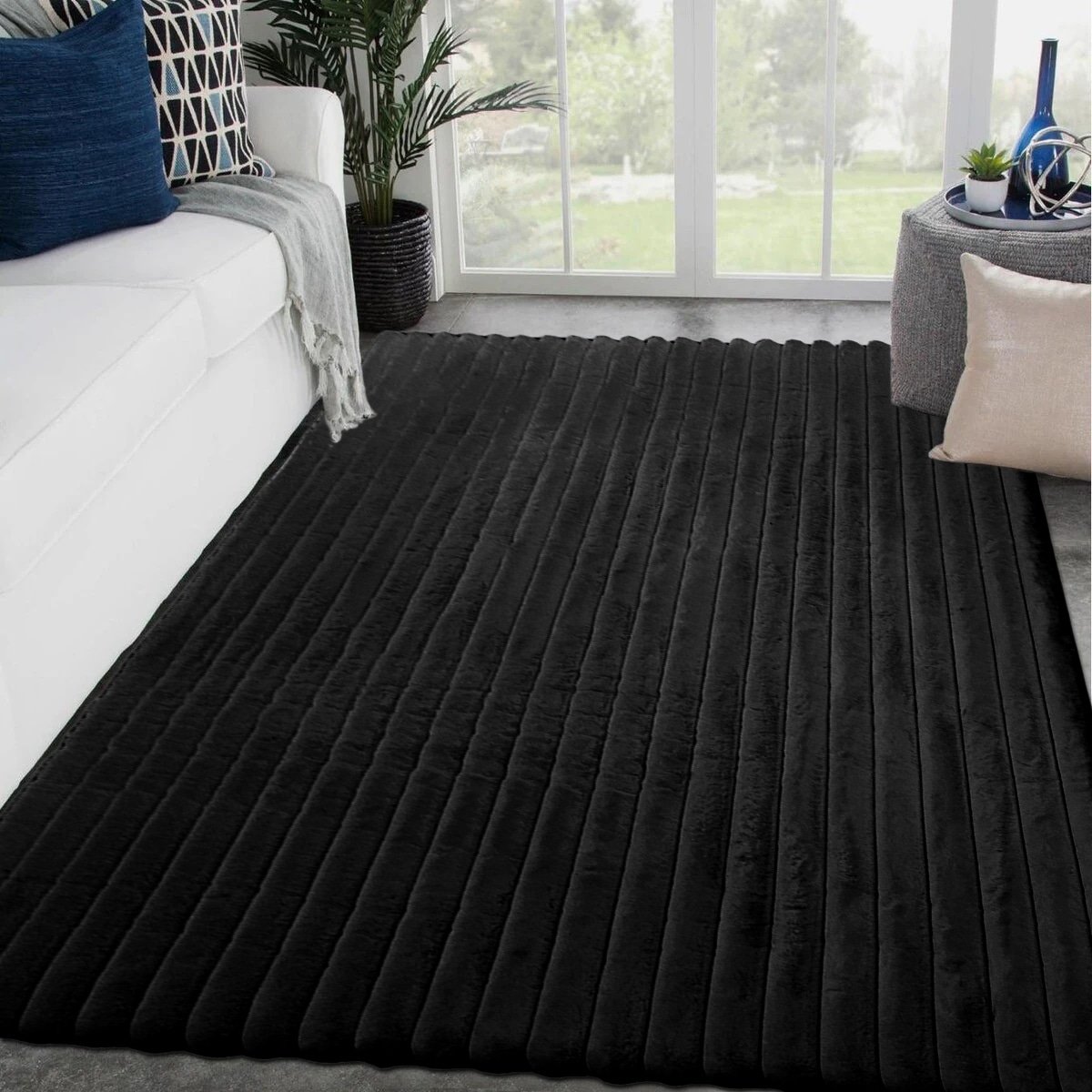 seamlessly into any setting. Its generous size and plush, thick pile provide