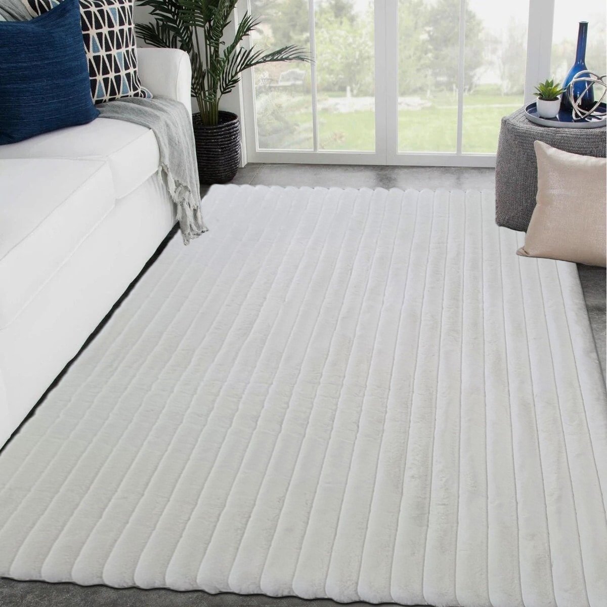 seamlessly into any setting. Its generous size and plush, thick pile provide