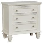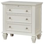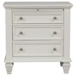 Bring functionality and timeless style to your bedroom with this elegant nightstand, featuring thoughtful design details and ample storage. This nightstand includes three spacious drawers with felt lining in the top drawer, perfect for safeguarding delicate items. The addition of a pull-out service tray offers a convenient surface for drinks, books, or electronics, making it ideal for late-night use. Constructed from solid hardwood and engineered wood, it ensures durability, while the neutral finish and brushed nickel hardware add a touch of sophistication. The drawers are equipped with metal extension glides and feature English dovetail joints for smooth and lasting operation, providing both beauty and functionality to your bedside.