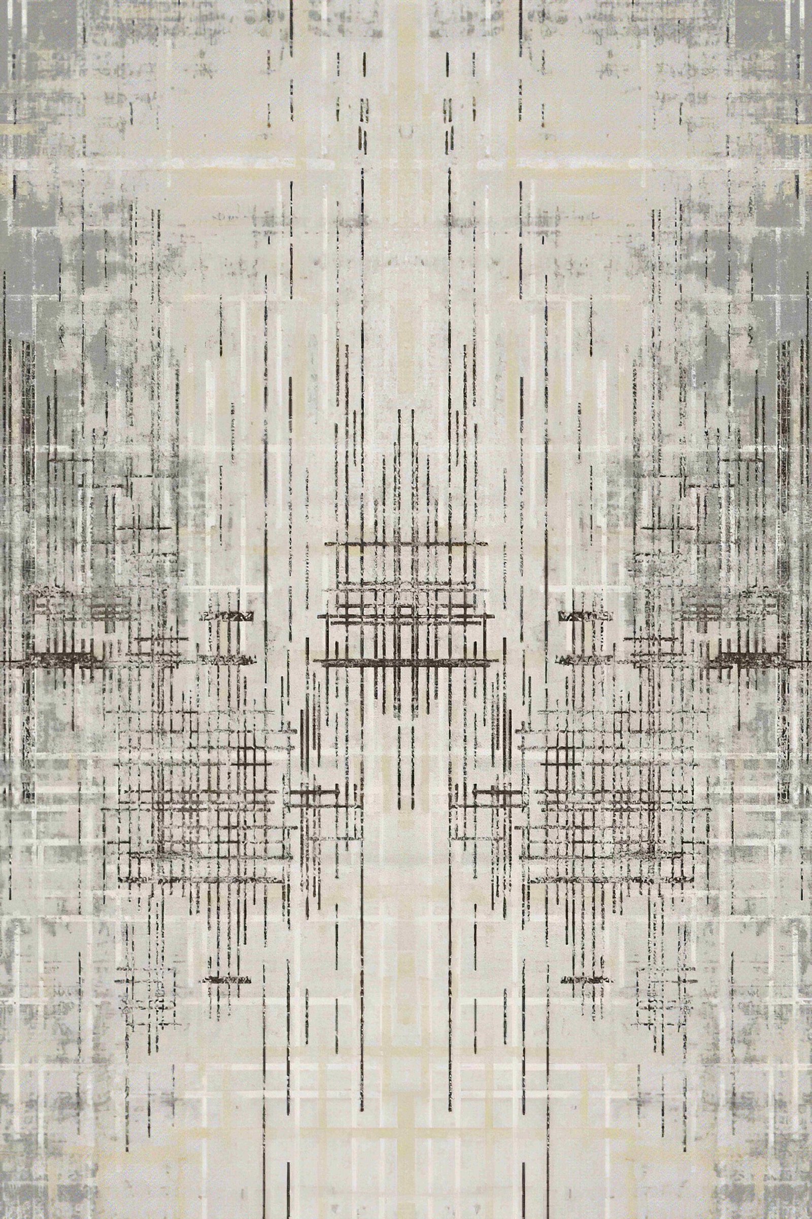 abstract composition with fine linear detailing in soft ivory, light grey,