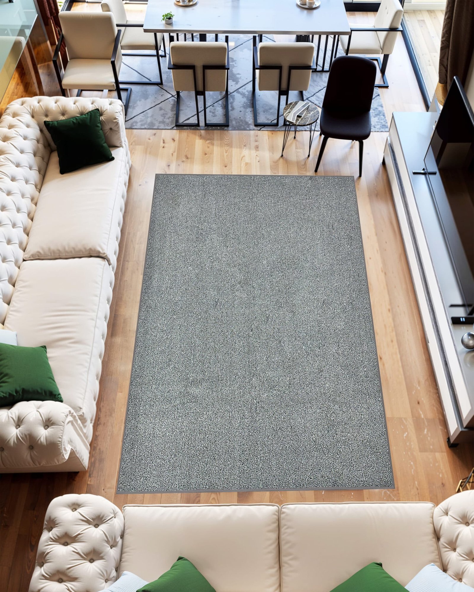 uniform grey tone with subtle woven texture, this rug provides a calm, modern