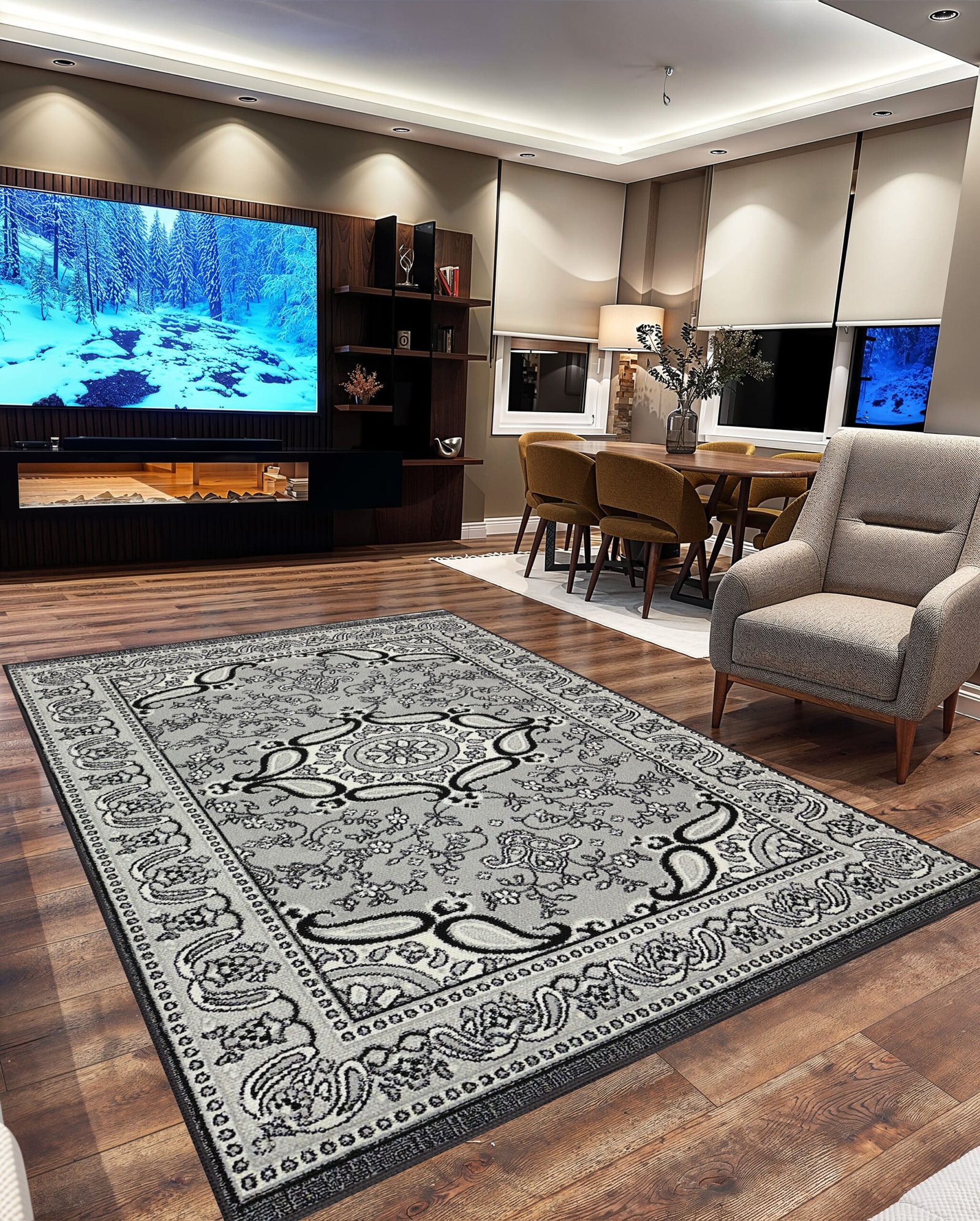 enhances its visual appeal, making it a trending rug choice for any modern