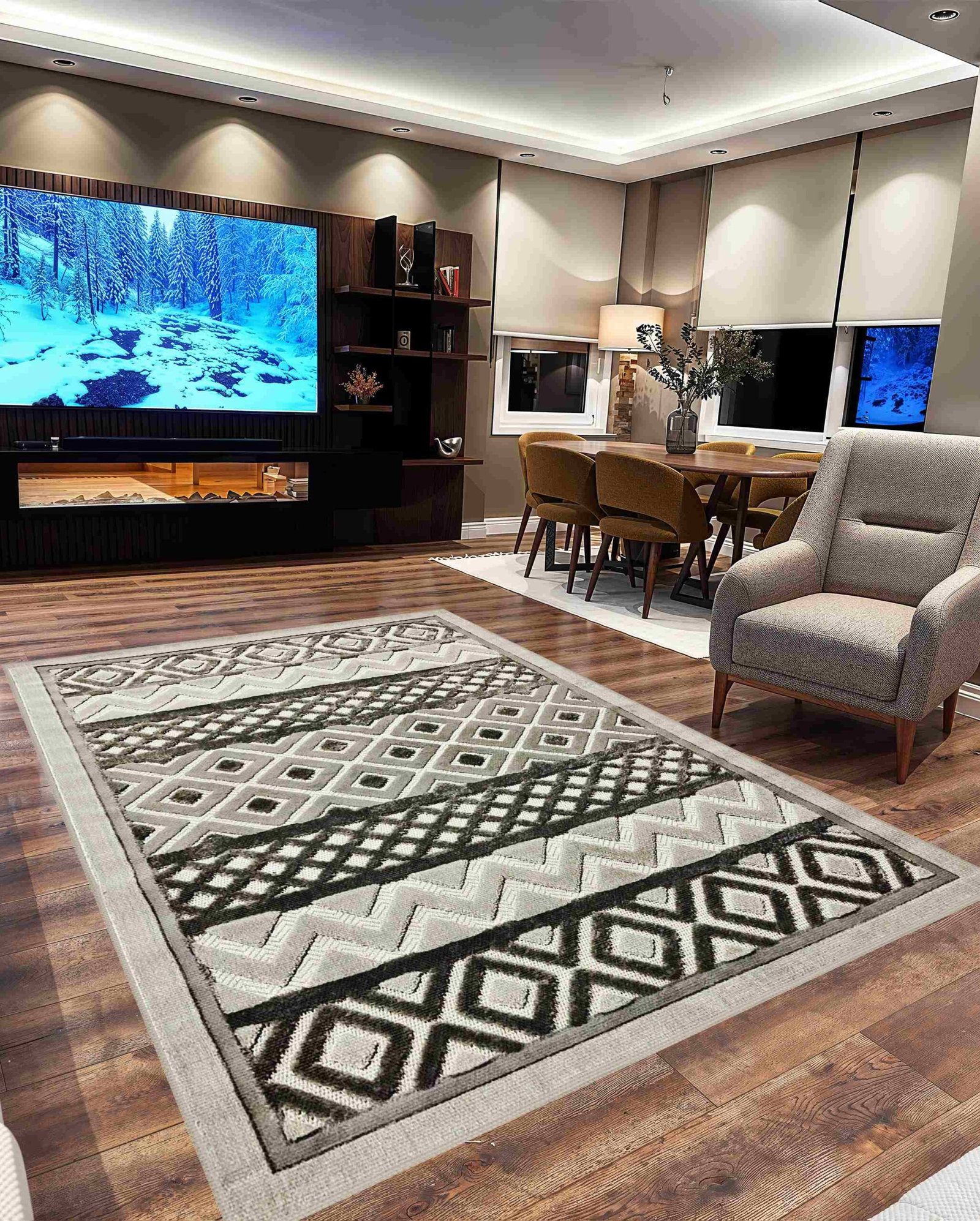 beautifully under sofas, desks, or even in entry zones as a strong statement